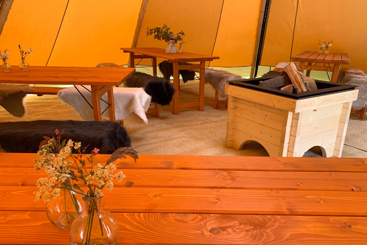 Om het feest compleet te maken, kunnen de TipiTenten voorzien worden van tafels, banken, verlichting, vuurtafels en accessoires. TipiRent heeft zelfs een unieke op maat gemaakte Douglas vlondervloer, voor een sfeervolle uitstraling. TipiRent luistert graag naar jullie wensen en denkt mee.