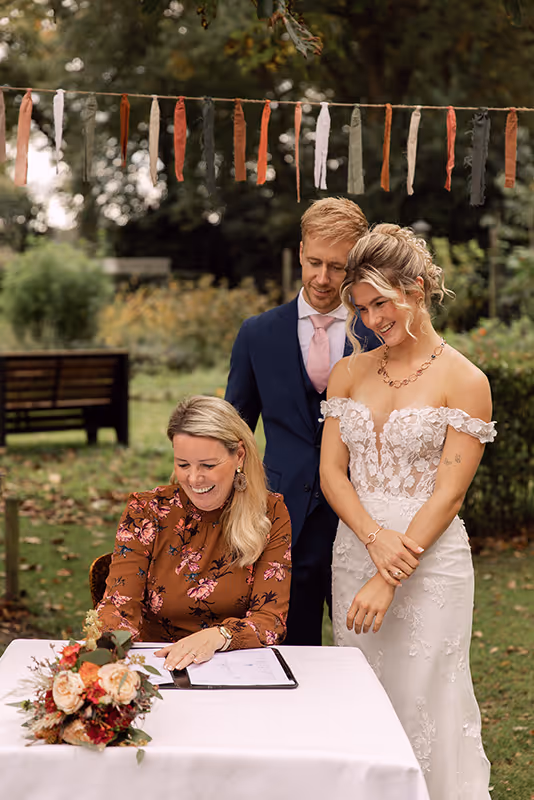 Wat leuk dat je hier bent! Jullie zoeken dus geen standaard ceremonie met een suf verhaaltje dat iedereen alweer vergeten is voor het toetje geserveerd wordt? Mooi! Dan zijn we al een beetje een match.