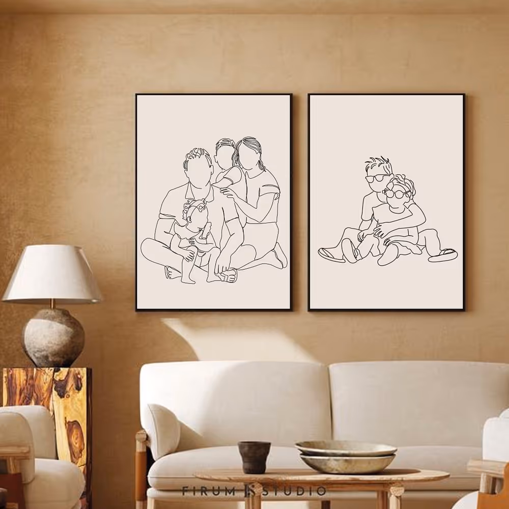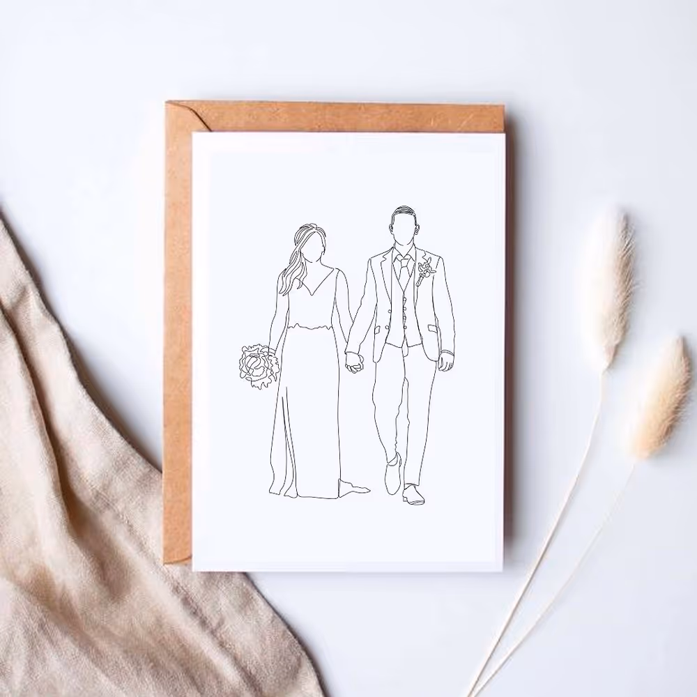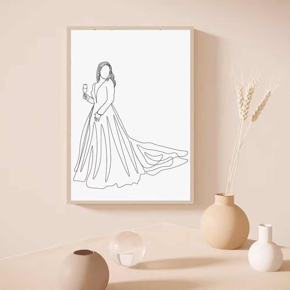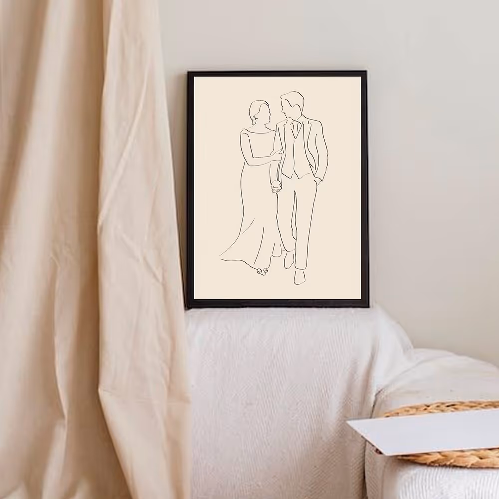 Voor een onvergetelijke herinnering maak ik prachtige lijntekeningen die jullie unieke liefdesverhaal vastleggen. Elk kunstwerk is volledig op maat en vangt jullie mooiste momenten, zoals de eerste dans of een liefdevolle omhelzing, in stijlvolle, minimalistische lijnen.