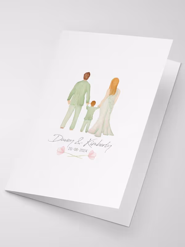 Elke bruiloft heeft een eigen sfeer en stijl. Misschien dromen jullie van een romantische illustratie van jullie trouwlocatie, een subtiele verwijzing naar jullie eerste ontmoeting, of een illustratie waarin jullie samen met jullie huisdieren schitteren. Wat jullie wensen ook zijn, ik zorg ervoor dat de kaart echt bij jullie past.
